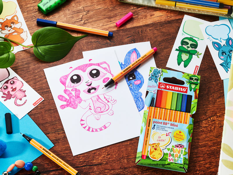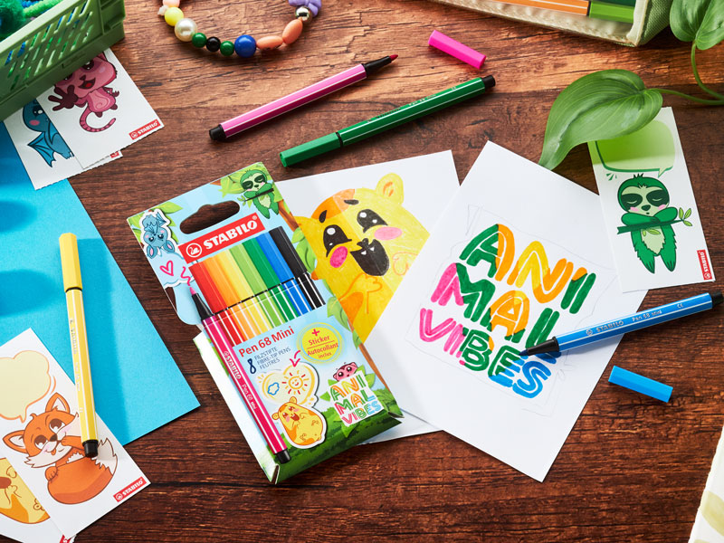 Tutti i prodotti della collezione STABILO Animal Vibes sono in formato mini, ideale per i bambini ma non solo: entrano in qualsiasi astuccio e sono pratici da portare sempre con sé.